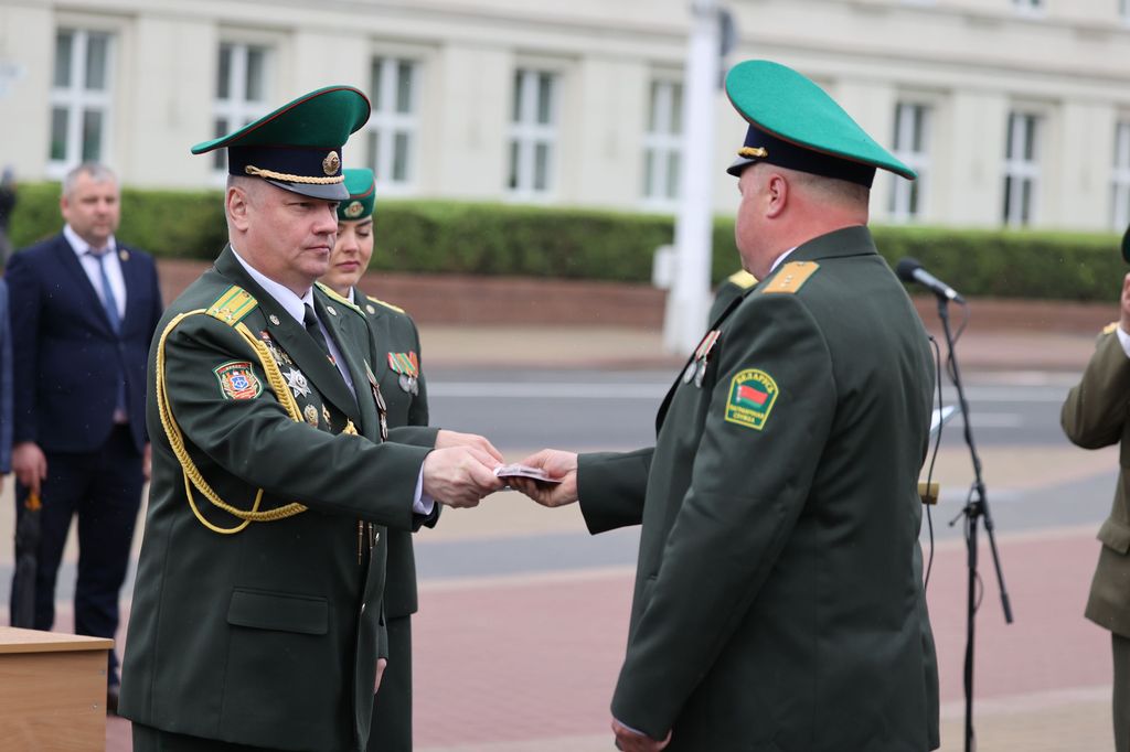 На площади Ленина состоялась церемония награждения военнослужащих Брестской пограничной группы по случаю профессионального праздника. Далее офицеры, военнослужащие и ветераны пограничной службы торжественным маршем прошли к мемориальному комплексу «Стражам границ», где возложили цветы к подножию мемориала.