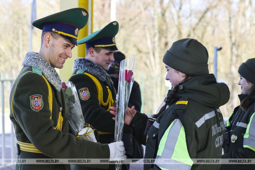 Брестские пограничники поздравили с 8 Марта въезжающих в Беларусь женщин