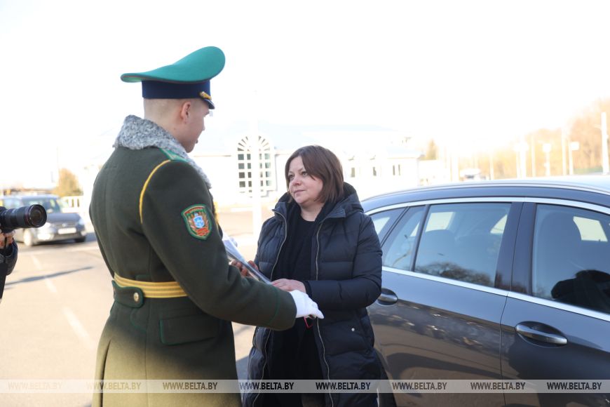 С цветами и оркестром поздравили с 8 Марта брестские пограничники женщин, въезжающих в Беларусь