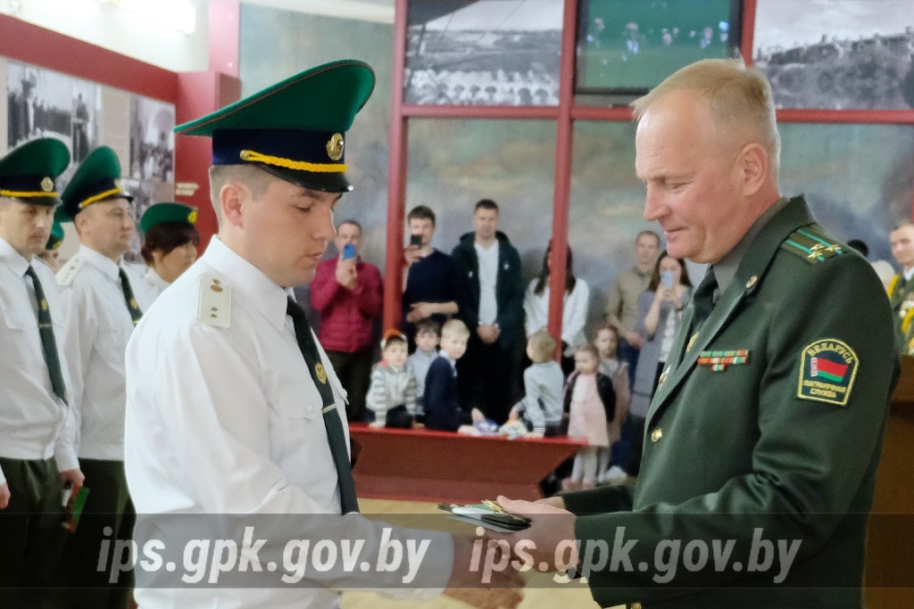 Молодых офицеров напутствовали начальник управления кадров Госпогранкомитета Республики Беларусь полковник Александр Макаревич, директор ГУ «Мемориальный комплекс «Брестская крепость - герой» Григорий Бысюк.