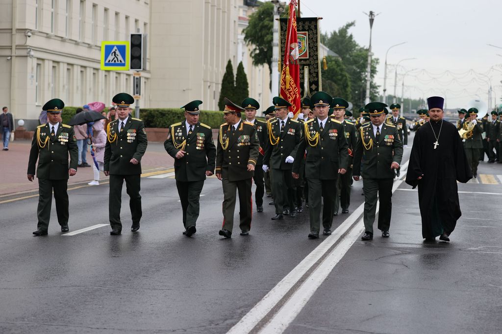 На площади Ленина состоялась церемония награждения военнослужащих Брестской пограничной группы по случаю профессионального праздника. Далее офицеры, военнослужащие и ветераны пограничной службы торжественным маршем прошли к мемориальному комплексу «Стражам границ», где возложили цветы к подножию мемориала.