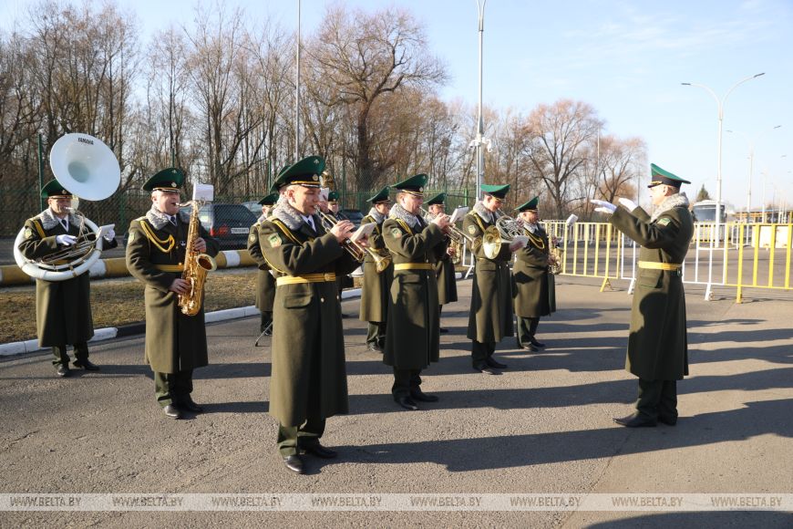 С цветами и оркестром поздравили с 8 Марта брестские пограничники женщин, въезжающих в Беларусь
