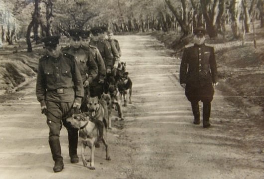 Снимок моих служивых лет. Н. Ф. Карацупа, наша легенда, с курсантами школы сл. собак.