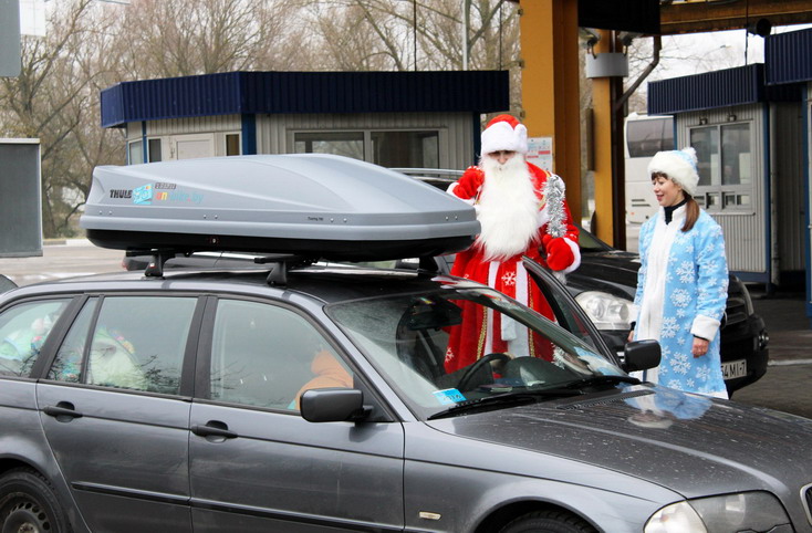 Новогодние персонажи помогали гражданам на белорусско-польской границе пройти таможенный контроль и своевременно успеть домой к